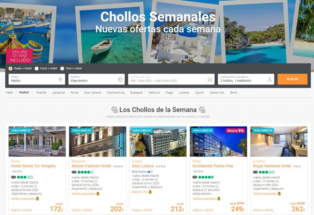 Nuestros chollos de viajes te ofrecen descuentos y tarifas especiales que harán que los sueños de viajar de tus clientes se hagan realidad.