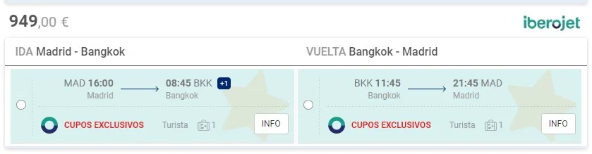 Cupos Exclusivos Madrid – Bangkok desde 475€ por trayecto