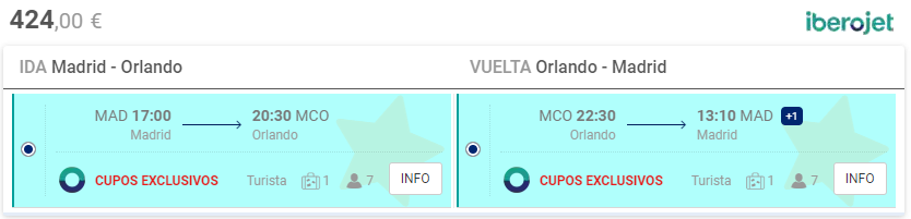Os informamos de unos cupos exclusivos para viajar en vuelo directo a Orlando este verano, con salidas del 7 de julio hasta el 11 de agosto.