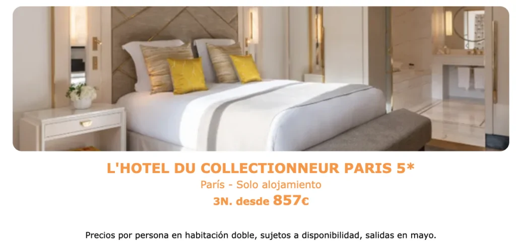 Hay destinos que conquistan a primera vista, y París es uno de ellos. Descubre esta selección de hoteles y aprovecha un 15% de descuento exclusivo.