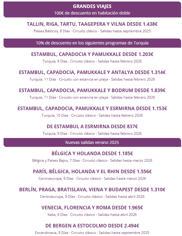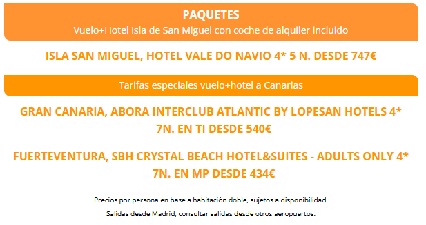 A continuación te mostramos las ofertas y productos más destacados de la semana en: grandes viajes y paquetes.