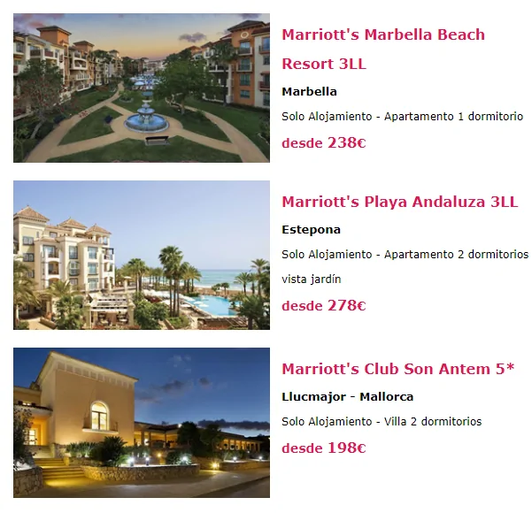Os informamos de la siguientes tarifas de la cadena Marriott’s con hasta un 40% de descuento que podéis encontrar en Smytravel/beds en estancias de 7 noches con entrada en sábado, excepto en Marriott´s Son Antem con entrada en sábado y domingo.