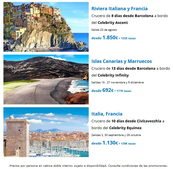 Y recuerda, que cuentas con Cupos especiales de Celebrity Cruises. Ver cupos.