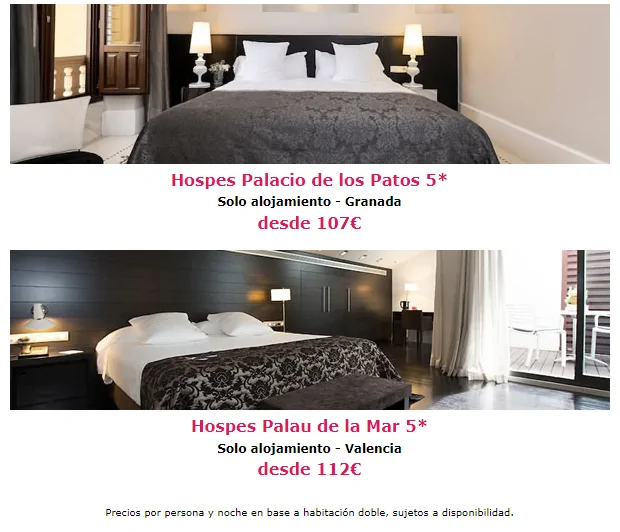 También tienes el 5% de descuento exclusivo, incluido en los siguientes hoteles de la cadena: