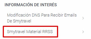 | ¿Sabías que cuentas con una pestaña en la que encontrar los «Reels o Stories que publicamos en nuestras redes sociales» para que puedas compartirlos en las tuyas? Para encontrarla, tan solo debes acceder a la pestaña «MENU» en la cabecera de la página web. ![]() Se te desplegará el menú principal en el lado izquierdo y en el apartado «Información de interés» podrás acceder a «Smytravel Material RRSS«. ![]() Aquí tienes algunos de los últimos ejemplos publicados. |