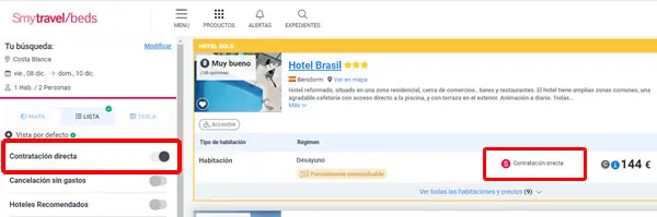 Por si no lo sabías o no lo recordabas, queremos contarte que tienes disponible en la web, un filtro para encontrar los hoteles de contratación directa en Smytravel/beds.