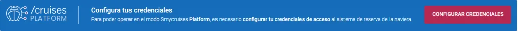 - Desde la página principal Smytravel/cruises tienes acceso a la configuración de tus credenciales para cada Naviera.