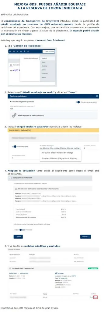 Smytravel/flights – Mejora GDS: Puedes añadir equipaje a la reserva de forma inmediata