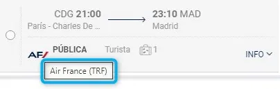 1. Identificativo: Se reconocen por el Tooltip Air France (TRF) al seleccionar el vuelo.