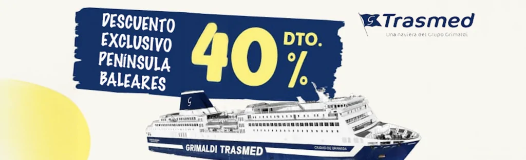 A continuación os detallamos la promoción exclusiva que puedes reservar en Smytravel con Trasmed, en rutas de Península a Baleares, aplicada a paquetes de Ferry+Hotel. 40% DE DESCUENTO EXCLUSIVO Condiciones: Puedes reservar el producto accediendo a la newsletter desde aqui