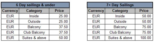 - La sobrecomisión es una cantidad fija que depende de la categoría de cabina: