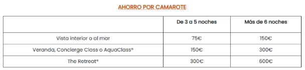 - Excluidos los cruceros «2×1» o con descuentos mayores al 50%.