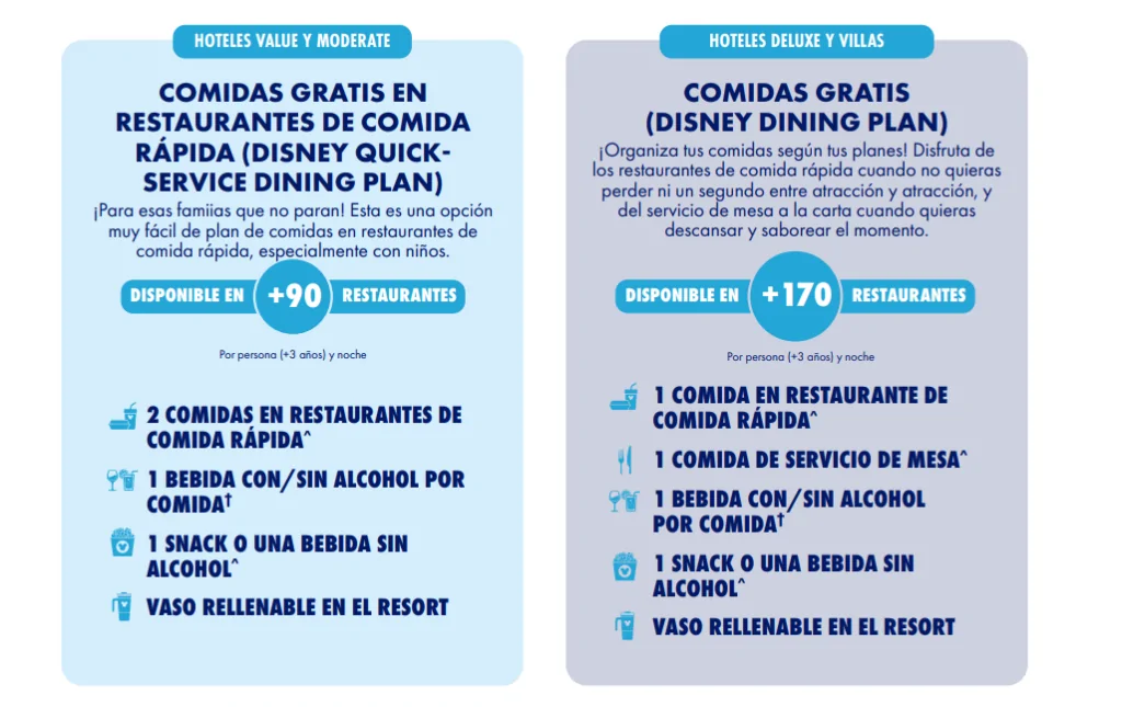 Descubre una amplia selección de deliciosas opciones gastronómicas en Walt Disney World Resort en Florida con nuestra oferta de COMIDAS GRATIS. Disponible para llegadas seleccionadas en 2025, reservando un paquete de Hotel Disney + entrada podrás difrutar de uno de los dos exquisitos planes de comidas GRATIS, además de más beneficios mágicos (dependiendo del tipo de paquete).
