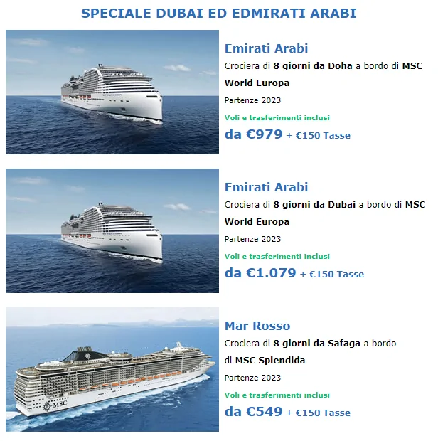 Prezzi per persona in cabina doppia soggetti a disponibilità.
