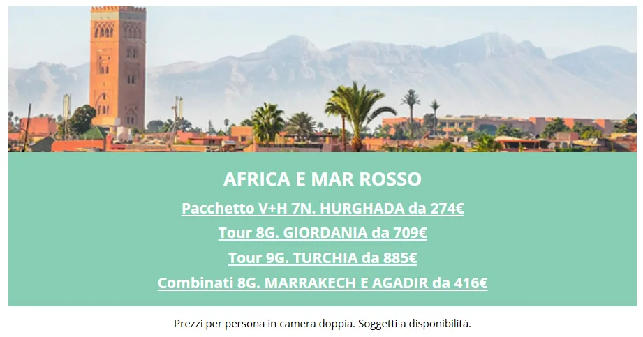 Approfitta di questa esclusiva campagna, per prenotare pacchetti e grandi viaggi a prezzi estivi senza precedenti, validi per tutte le destinazioni.