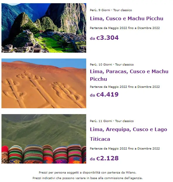 vogliamo informarti del seguente prodotto Perù, un paese dai luoghi magici, approfitta anche tu della campagna “Quest’estate, nessuno senza vacanze” fino a 200 € di sconto, per prenotazioni confermate entro il 3 giugno e per partenze dal 1 giugno al 30 settembre.