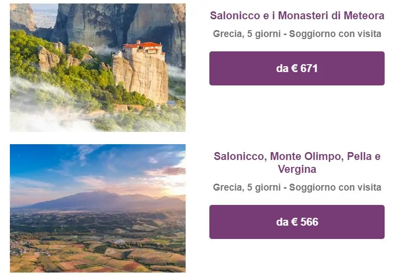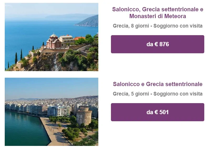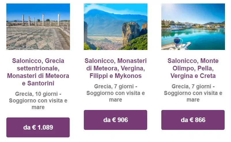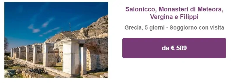È ora disponibile una nuova e completa programmazione per percorrere il Nord della Grecia. Da Salonicco, si potranno visitare i luoghi di maggior interesse della zona, come la penisola CalcidicaDion ed il Monte Olimpo, gli affascinanti Monasteri di MeteoraPella e Vergina, le rovine di uno dei siti archeologici di maggior rilevanza del paese, AmphipolisFilippi e Kavala, e per completare la programmazione, abbiamo previsto estensioni ad alcune delle più belle isole greche, SantoriniMykonos e Creta.