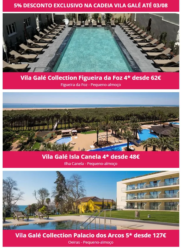 5% desc. exclusivo com a Cadeia Vila Galé até 03/08
