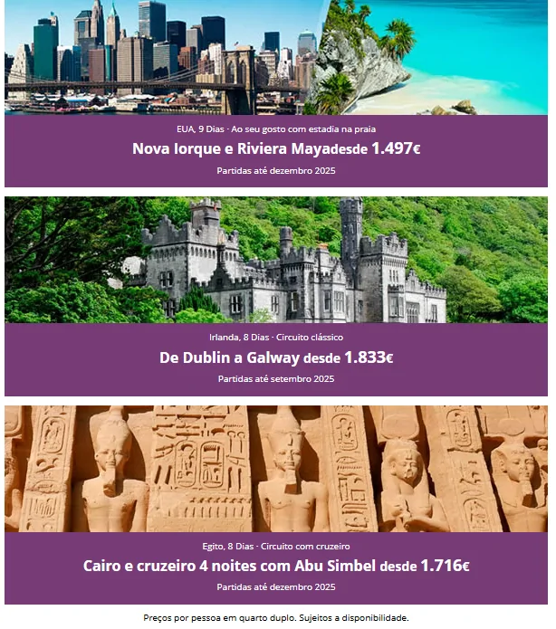 • Aplicável a grandes viagens selecionadas com partida em 2025