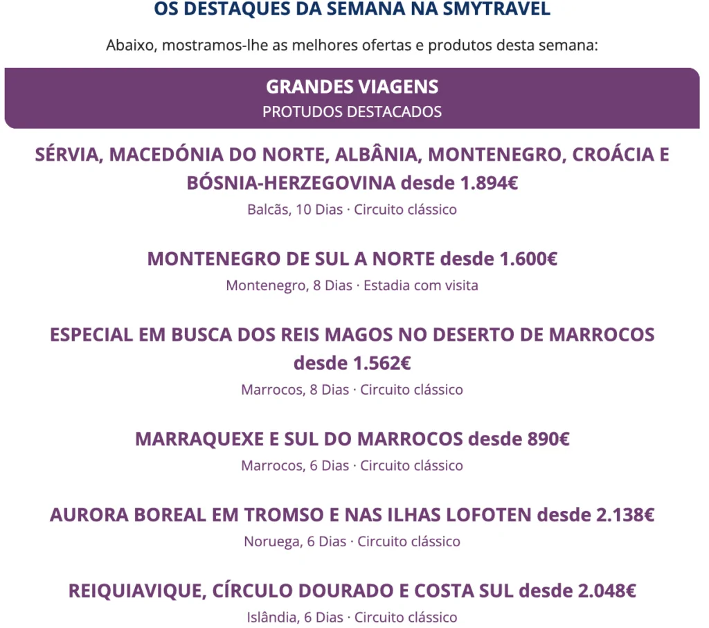 Os destaques da semana na Smytravel