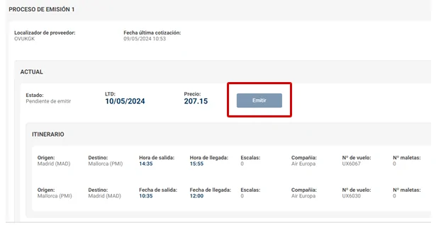 1-  A partir do próprio localizador, no apartado “Gestão“, e depois selecionar a gestão: “Emitir bilhete“.