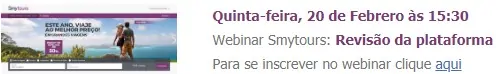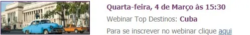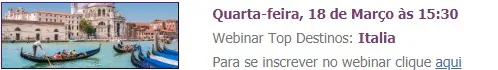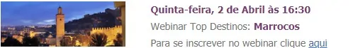 Abaixo informamos as datas que programamos para a realização do webinar para cada destino. Pode inscrever-se agora ou na convocatória semanal que enviaremos para relembrar o destino dessa semana.