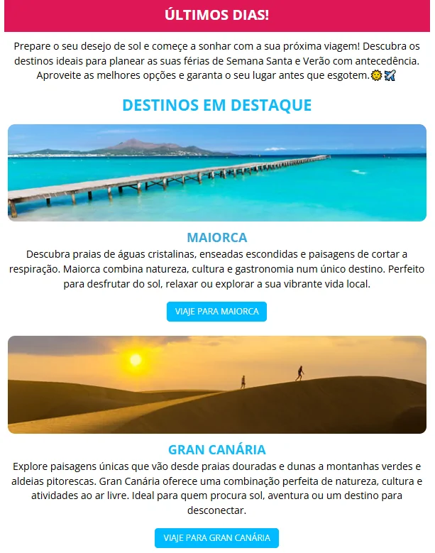 Útimos dias! Venda antecipada de Semana Santa e Verão